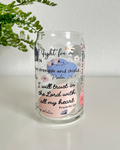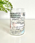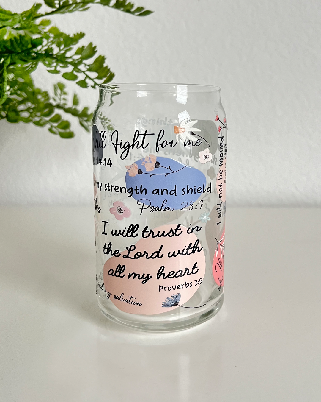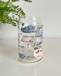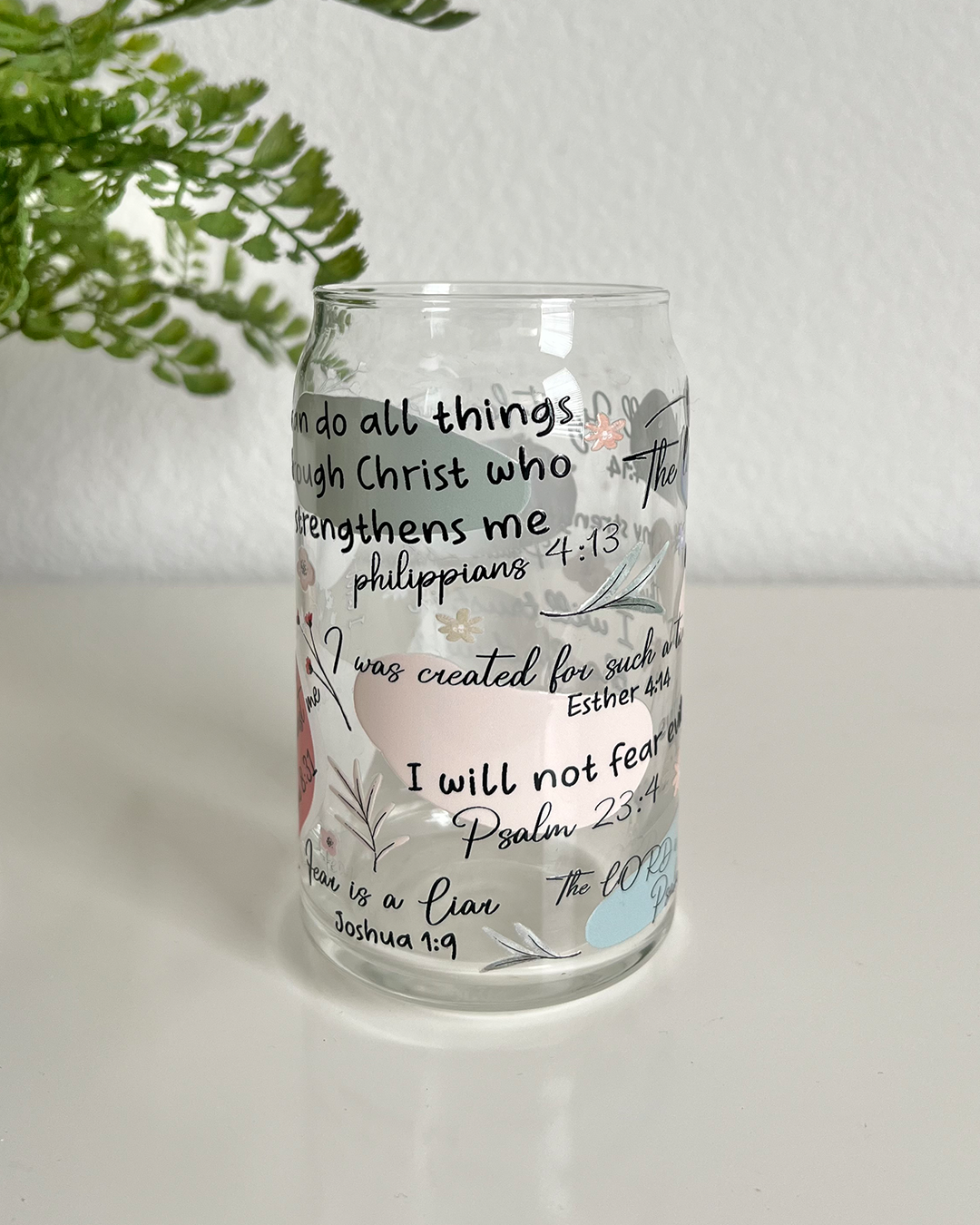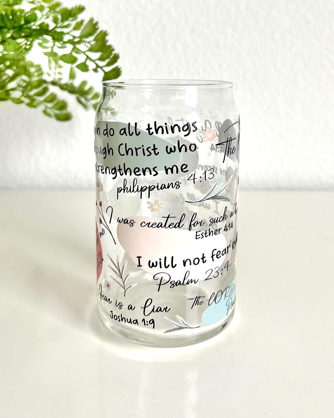 The clear design allows the beauty of the verse to shine through, while the glass construction keeps your drink cool and refreshing. It's a perfect way to keep your faith close at hand and a wonderful gift for a friend or family member.