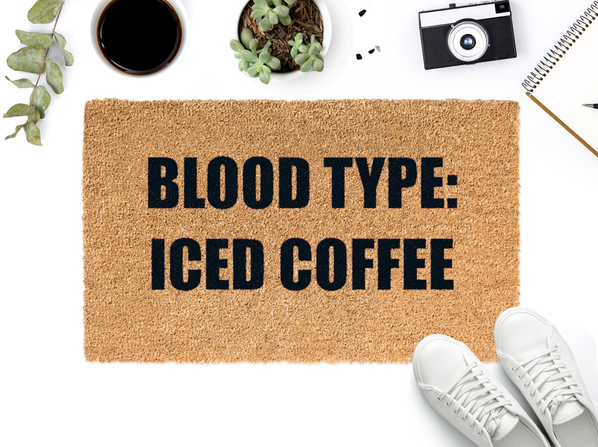 Calling all coffee lovers! This doormat proudly declares your dependence on the delicious beverage. It's a relatable message for anyone who relies on a good iced coffee fix to get going.