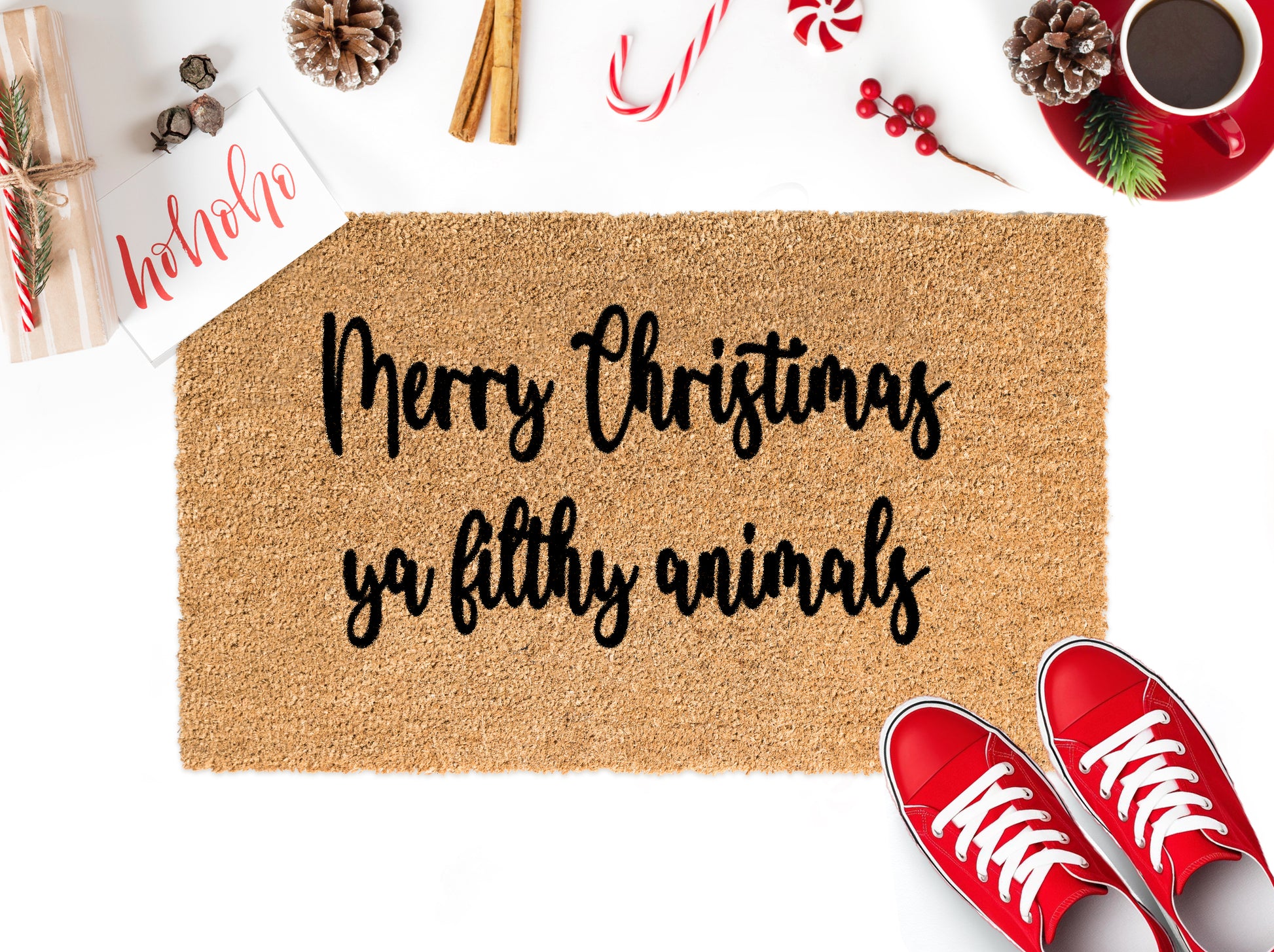 This doormat is a hilarious twist on a classic holiday greeting, referencing a memorable line from the beloved holiday movie "Home Alone." The resourceful young protagonist, Kevin McCallister, utters this phrase to a pair of bumbling burglars while defending his home.