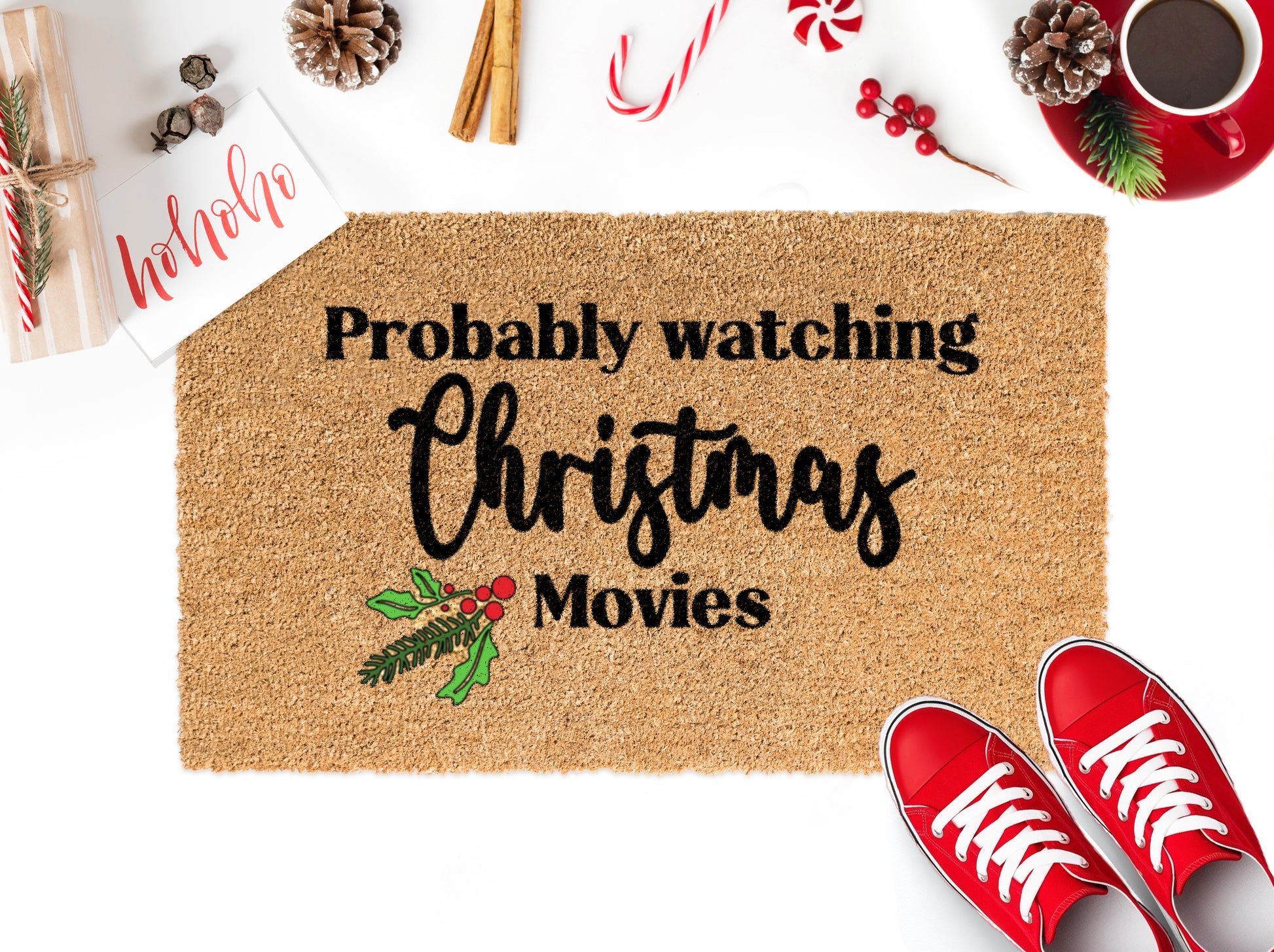 This doormat is a relatable statement for anyone who prioritizes cozy nights in with steaming mugs of hot cocoa and classic holiday films. Let the twinkling lights on the tree cast a warm glow as you settle in for a marathon of your favorite Christmas movies.